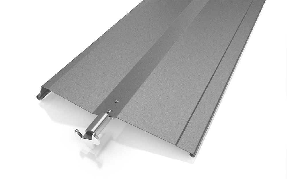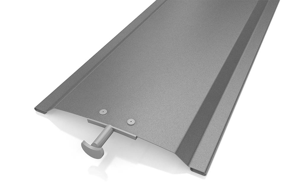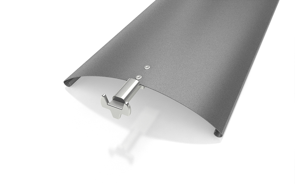 Das Schutzblech aus Aluminium deckt die Oberschiene und das Lamellenbündel ab und schützt sie vor Witterungseinflüssen, wenn der Raffstore hochgezogen ist. Die Farbe kann an die Farbe der Jalousien oder der Fassade angepasst werden. Diese Lösung ist ideal für eine nachträgliche Montage.